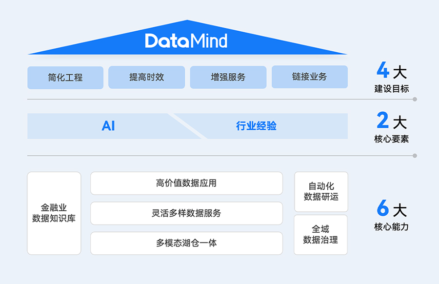 DataMind 定位于金融機構(gòu)的"數(shù)據(jù)神經(jīng)中樞",有機融合AI、BigData、Cloud、DataOps等前沿技術(shù),提供覆蓋多模態(tài)數(shù)據(jù)處理、實時數(shù)據(jù)湖倉構(gòu)建、組件化數(shù)據(jù)服務(wù)、場景化數(shù)據(jù)應(yīng)用的數(shù)智一體化產(chǎn)品。