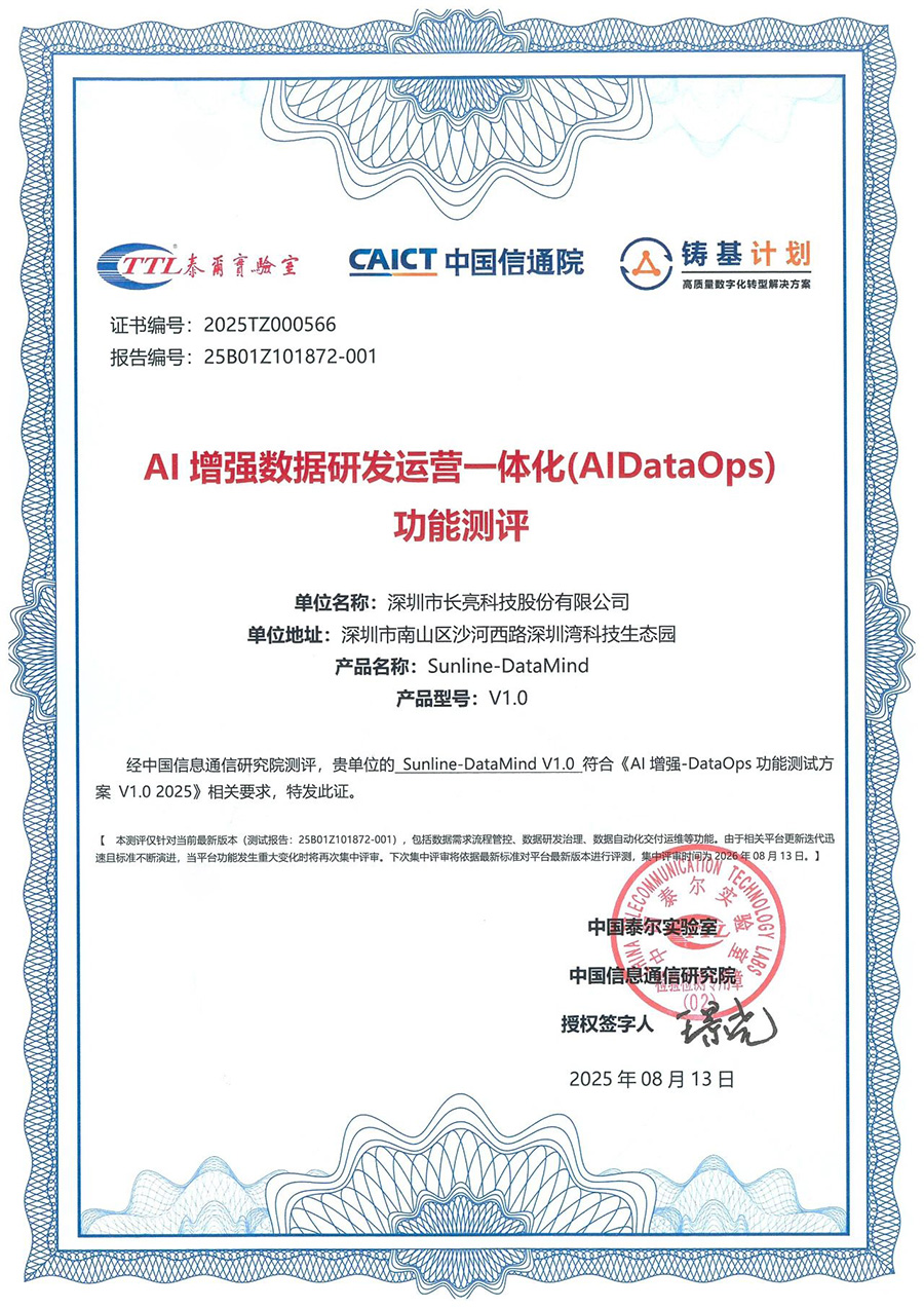 此次通過中國信通院權威測評,不僅標志著DataMind技術能力得到行業高度認可,更夯實了長亮科技在金融數據管理領域的領先地位。未來,長亮科技將以 AI 與 DataOps 技術為核心,持續推進DataMind智能化能力迭代升級,賦能更多金融機構釋放數據價值,助力其在激烈的市場競爭中搶占先機。