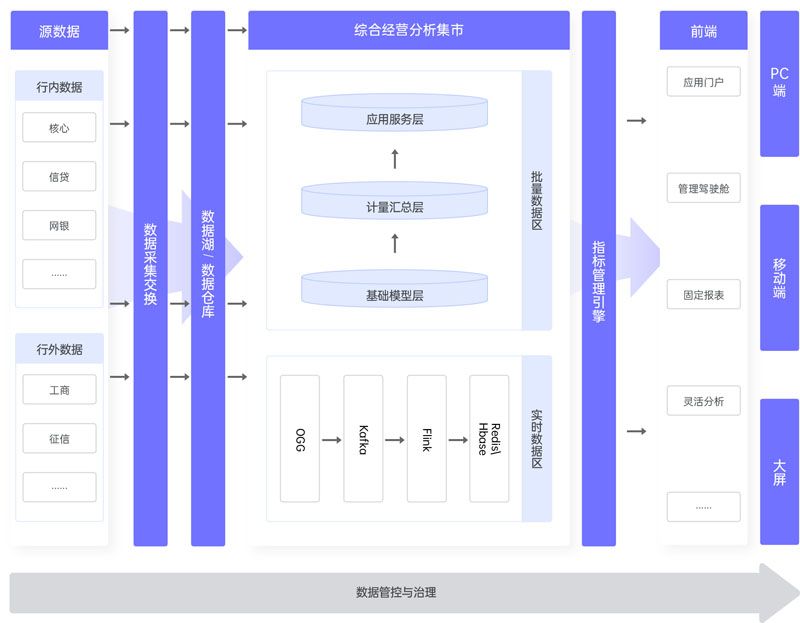 集成了數據采集、存儲、處理、分析和展現的全鏈條解決方案,旨在為企業提供全面、準確、及時的經營分析支持,展示形式包括管理駕駛艙、固定報表、大屏等。