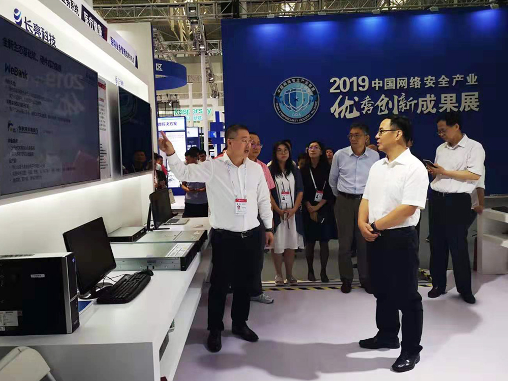 展覽期間,中共中央網信辦副主任劉烈宏、中共中央網信辦總工程師趙澤良、中共中央網信辦網安局一級巡視員兼副局長楊春艷均到長亮科技展位考察調研,劉烈宏副主任認真聽取了長亮科技總裁助理孫世勝介紹公司“分布式銀行核心業務系統”近年來在金融安全可控領域做出的技術突破以及應用生態環境技術創新,劉烈宏副主任表示了贊許。