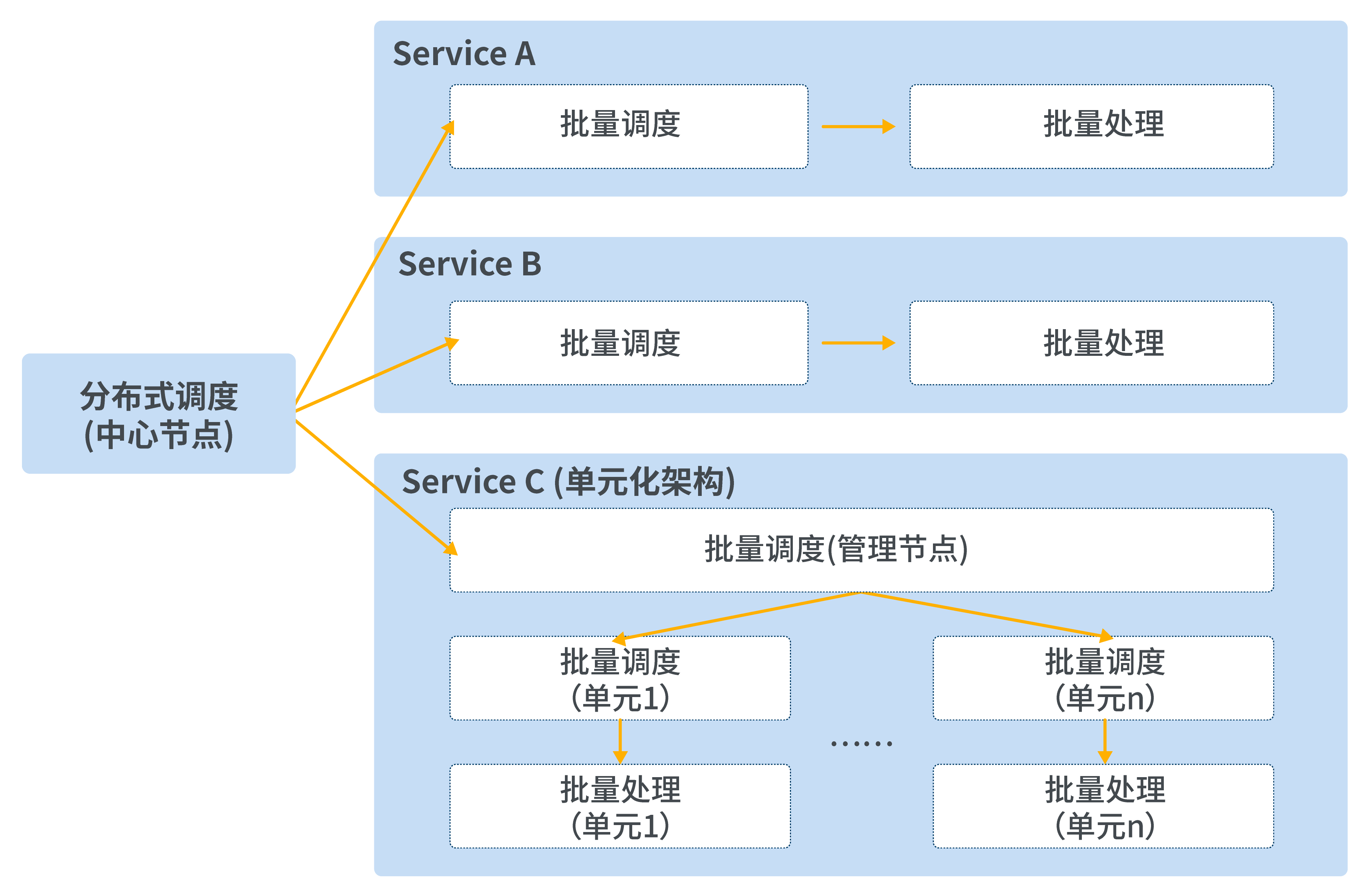 分布式調度,在設計上要充分考慮微服務架構和分布式架構(單元化分布式架構、數據庫中間件分布式架構)下的混合調度處理,同時需要關注框架的擴展性、去中心化調度能力、數據分區能力。