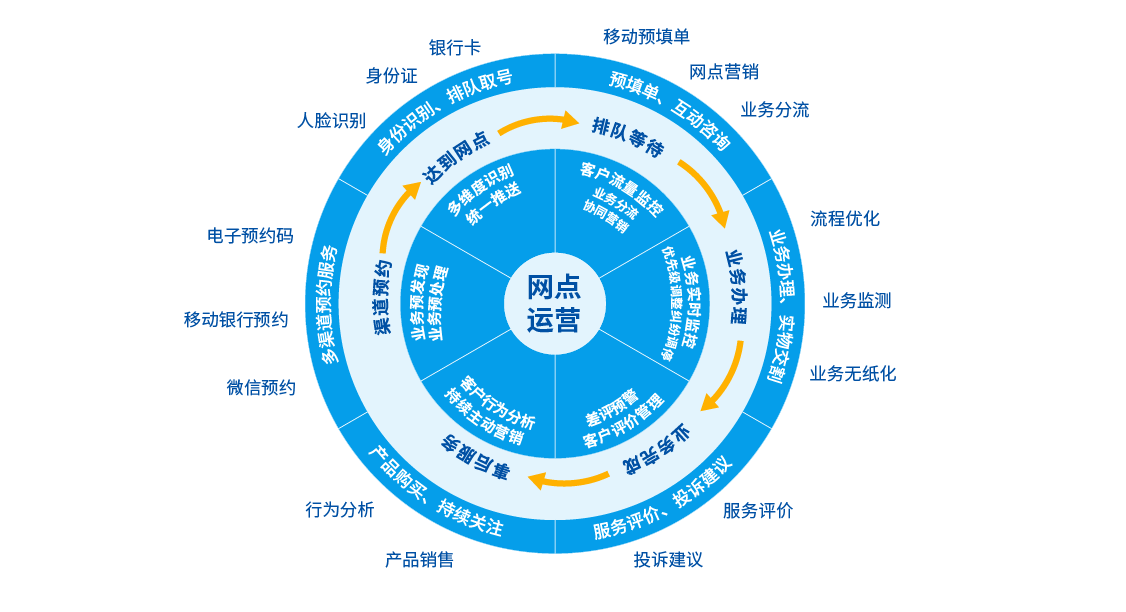 與此同時,網點系統實時采集客戶到訪網點的主要行為數據,尤其是在各業務前端上的行為數據,幫助系統完善客戶畫像和需求識別的精度,從而進一步提升網點服務效率和營銷成功率。