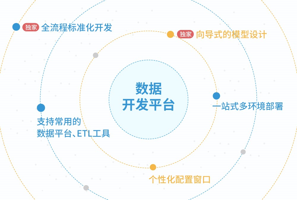 基于在金融大數據平臺、數據倉庫多年的建設實施經驗,長亮科技提煉整合出一套先進的數據開發平臺,提供完整構建企業大數據平臺、數據倉庫的輔助開發功能及信息檢索組件,不僅可以減少研發人員重復作業,還可實現快速數據開發,保證開發質量,以響應業務場景對數據的需求。目前已在多家銀行建設實施。