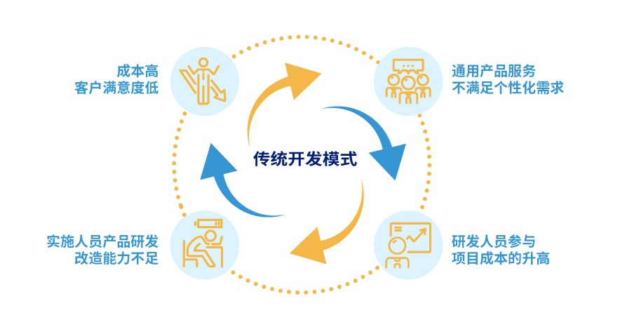 金融業激烈競爭下,客戶體驗為王、效率至上,傳統開發模式已成為提升競爭力的掣肘因素,降低開發成本、提升效率、敏捷易上手及易擴展等成為行業首要關注點。