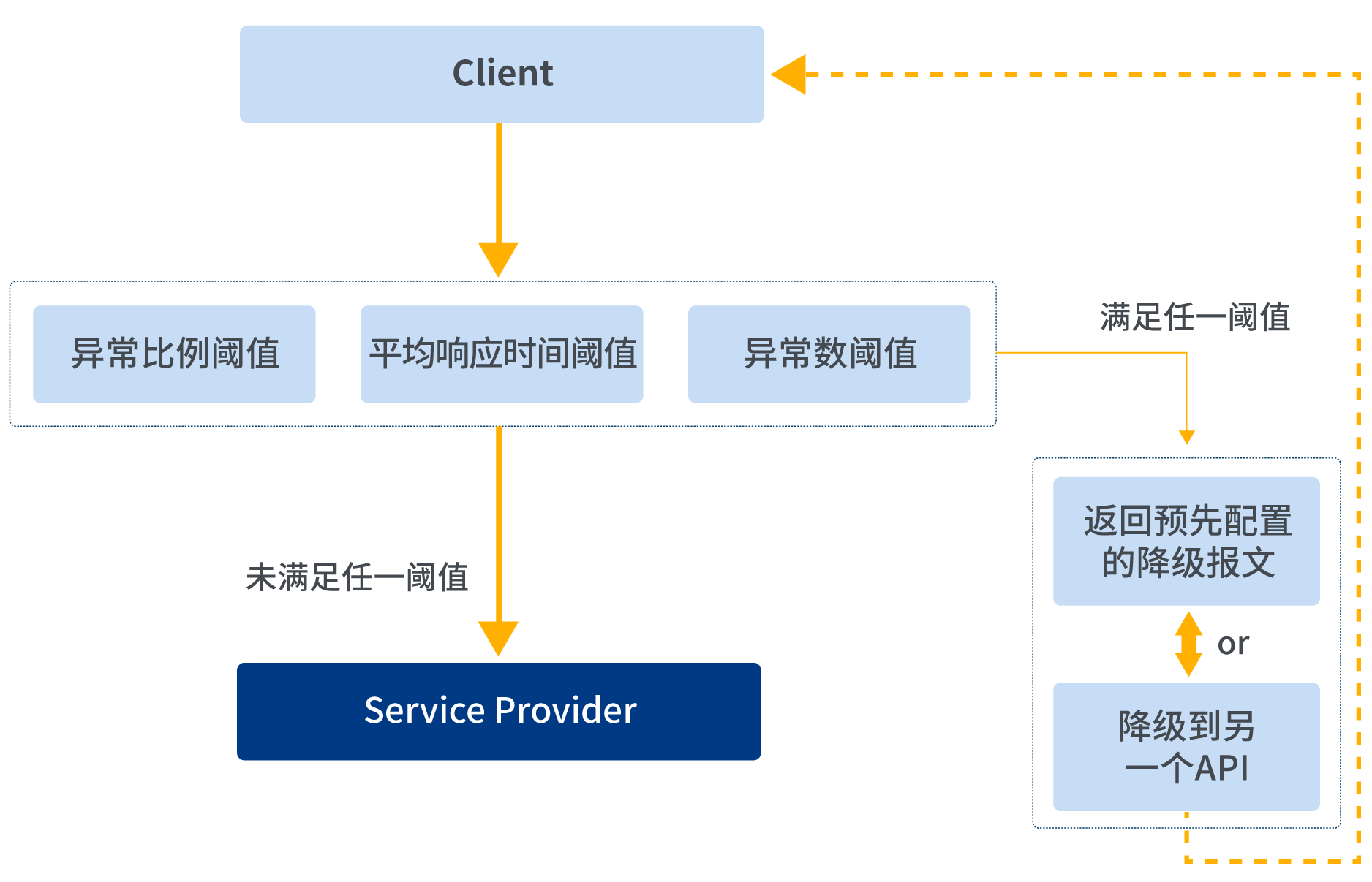 當服務故障時,為了防止整個系統的故障,對系統采取熔斷降級策略??筛鶕骄憫獣r間、秒級異常比例、分鐘級異常數等維度進行熔斷降級處理。